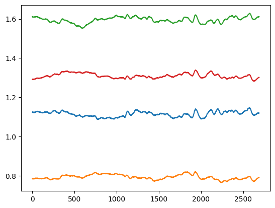 forfilein errorfiles:# load the df error = pd.read_csv(file) session =file.split('\\')[-1].split('_')[0]# make new columns audio, video and bb error['audio'] ='' error['video'] ='' error['bb'] =''# now let's find corresponding wrong files in audio and video audio = datafolder +'Audio/' csv = glob.glob(datafolder +'*.csv')# loop over the error wordsfor i inrange(len(error)):# get the word word = error['word'][i]# get the part part = error['part'][i]# if the correction is not NaN, get it and transform to integerif pd.isna(error['correction'][i]) ==False: correction =int(error['correction'][i])# if correction is 0, it is c0if correction ==0: correction ='c0'elif correction ==1: correction ='c1'else: correction ='c2' part ='2' sessionID = session +'_'+ partelse: correction ='' part ='1' sessionID = session +'_'+ part# loop over the csv filesfor j inrange(len(csv)):# if the word is in the csv fileif word in csv[j] and sessionID in csv[j] and correction in csv[j]:# get the corresponding csv file csv_file = csv[j]# if the file has Mic in it, save its name to column audioif'Mic'in csv_file: error.loc[i, 'audio'] = csv_file# if the file has Webcam in it, save its name to column videoelif'Webcam'in csv_file: error.loc[i, 'video'] = csv_file# if BalanceBoard in it, save its name to column bbelif'BalanceBoard'in csv_file: error.loc[i, 'bb'] = csv_file# create begin_time and end_time columns error['begin_time'] =0.0 error['end_time'] =0.0########################## re-cutting csv files ############################### now we will get to each timeseries, and correct the frame/time range csv_ts = glob.glob(timeseries +'*.csv') webcam_ts = [x for x in csv_ts if'Webcam'in x] mic_ts = [x for x in csv_ts if'Mic_nominal'in x] bb_ts = [x for x in csv_ts if'BalanceBoard'in x]# loop over the error wordsfor i inrange(len(error)):print(error['word'][i])# if the session is 0_1 load 0_1_MyWebcamFrameStreamif error['part'][i] ==1: sessionID = session +'_1' webcam_ts = timeseries + sessionID +'_MyWebcamFrameStream_nominal_srate500.csv' ts_w = pd.read_csv(webcam_ts) mic_ts = timeseries + sessionID +'_Mic_nominal_srate16000.csv' ts_m = pd.read_csv(mic_ts) bb_ts = timeseries + sessionID +'_BalanceBoard_stream_nominal_srate500.csv' ts_bb = pd.read_csv(bb_ts)elif error['part'][i] ==2: sessionID = session +'_2' webcam_ts = timeseries + session +'_2_MyWebcamFrameStream_nominal_srate500.csv' ts_w = pd.read_csv(webcam_ts) mic_ts = timeseries + sessionID +'_Mic_nominal_srate16000.csv' ts_m = pd.read_csv(mic_ts) bb_ts = timeseries + sessionID +'_BalanceBoard_stream_nominal_srate500.csv' ts_bb = pd.read_csv(bb_ts)# get the start and end of the corrected range of frames begin = error['frame_begin'][i] end = error['frame_end'][i]# video correction begin = error['frame_begin'][i] end = error['frame_end'][i] error, file_name, subset = correct_file(i, begin, end, error, ts_w, 'video')iflen(subset) ==0:print('This file is empty: '+ error['video'][i])else:# save also the begin_time and end_time error.loc[i, 'begin_time'] = subset.iloc[0,0] error.loc[i, 'end_time'] = subset.iloc[len(subset)-1,0] subset.to_csv(file_name, index =False) # audio correction begin_time = error.loc[i, 'begin_time'] end_time = error.loc[i, 'end_time'] error, filename, subset = correct_file(i, begin_time, end_time, error, ts_m, 'audio')iflen(subset) ==0:print('This file is empty: '+ error['audio'][i])else: subset.to_csv(filename, index =False)# balanceboard correction error, filename, subset = correct_file(i, begin_time, end_time, error, ts_bb, 'bb')iflen(subset) ==0:print('This file is empty: '+ error['bb'][i])else: subset.to_csv(filename, index =False)################### rewriting audio and video ############################# get all the csv files with _corrected in it correct = glob.glob(datafolder +'*_corrected.csv') audio = datafolder +'Audio/'# loop over them for i inrange(len(correct)):print(correct[i]) sessionID = correct[i].split('\\')[-1].split('_')[0] +'_'+ correct[i].split('\\')[-1].split('_')[1]# if it has Mic in it, create an audioif'Mic'in correct[i]: file_name = correct[i]# take only the last part of the path file_name = file_name.split('\\')[-1]# replace _corrected.csv by .wav file_name = file_name.replace('.csv', '.wav') print(file_name) wavloc = audio+file_name ts = pd.read_csv(correct[i])# make second column into a list sound = ts.iloc[:,1].tolist() to_audio(wavloc, sound)# load data rate, data = wavfile.read(wavloc)# perform noise reduction reduced_noise = nr.reduce_noise(y=data, sr=rate, n_std_thresh_stationary=1.5,stationary=True) file_name2 = file_name.replace('.wav', '_denoised.wav') wavloc2 = audio + file_name2 wavfile.write(wavloc2, rate, reduced_noise)# if it has webcam in it, create a videoelif'Webcam'in correct[i]:print('This is a video') ts = pd.read_csv(correct[i]) videolong = experiment_to_process+'\\'+ sessionID +'\\'+ sessionID +'-video.avi'print(videolong) begin_time = ts['0'].min() # begin time of the trial end_time = ts['0'].max() # end time of the trial# get the begin and end frame begin_frame = ts['1'].min().astype(int) end_frame = ts['1'].max().astype(int) totframes = end_frame-begin_frame # total number of frames in the trial frames =range(begin_frame, end_frame) #get all the frames in trial#load in the long videoprint('Loading the original video') capture = cv2.VideoCapture(videolong) originalfps =round((totframes/(end_time-begin_time)),3)print('original fps: '+str(originalfps))# filename filename = correct[i].split('\\')[-1]# replace MyWebcamFrameStream_nominal_srate500_ with '' filename = filename.replace('MyWebcamFrameStream_nominal_srate500_', '')# replace csv. with '' filename = filename.replace('.csv', '')# this is the location where the video will be saved vidloc = datafolder + filename +'_video_raw'+'.avi'# video metadata fourcc = cv2.VideoWriter_fourcc(*'XVID') frameWidth = capture.get(cv2.CAP_PROP_FRAME_WIDTH) frameHeight = capture.get(cv2.CAP_PROP_FRAME_HEIGHT)# start writing videoprint('Starting to write the 