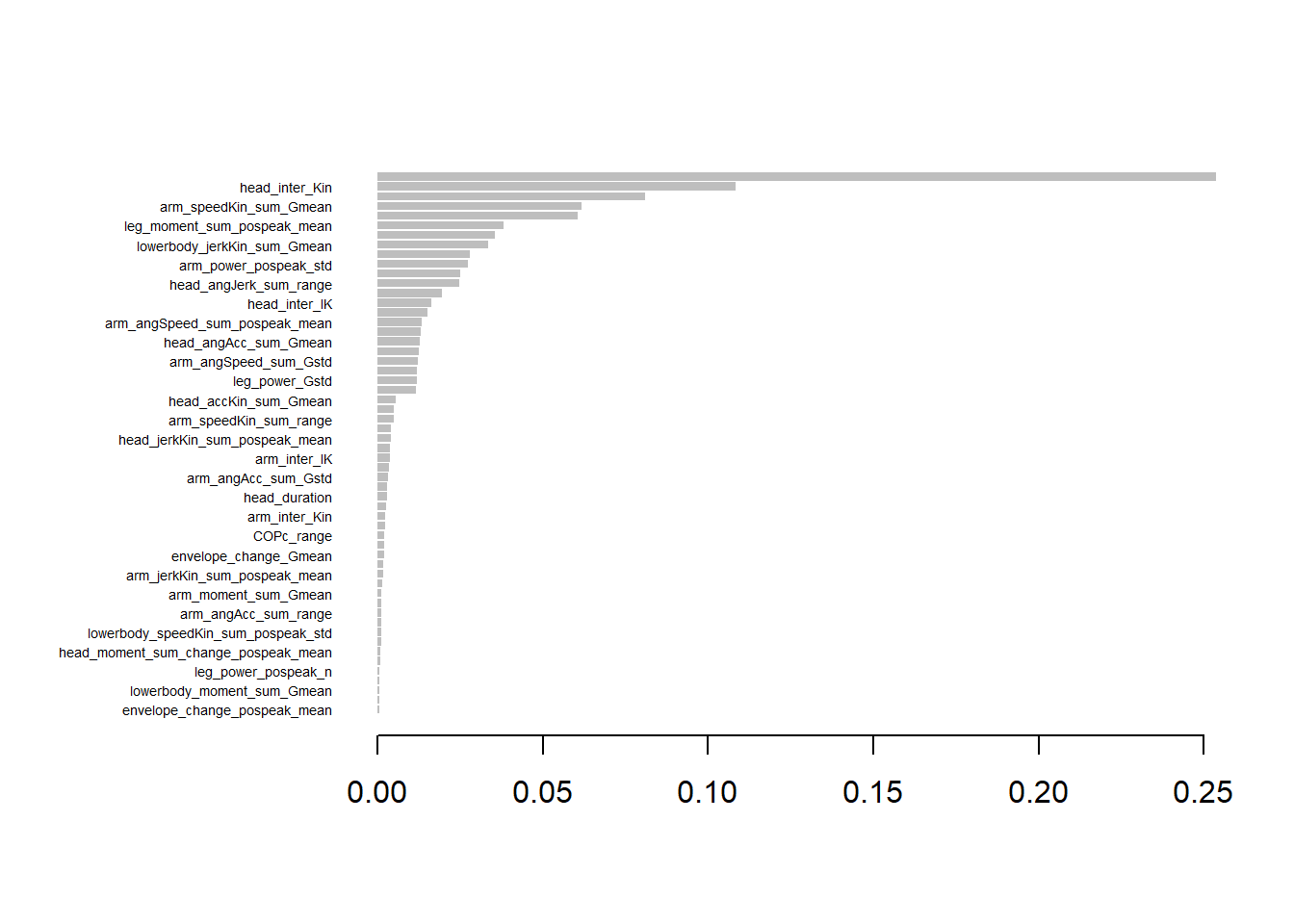 In this script, we are going to use XGBoost, eXtreme Gradient Boosting (Chen and Guestrin 2016), to identify effort-related features beyond those investigated within our confirmatory analysis, i.e., torque change, amplitude envelope, and change in center of pressure.